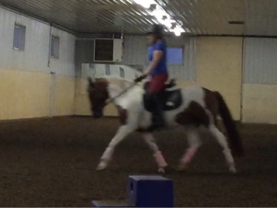 After a really decent set of trot circles and some of the most balanced changes of direction that we've done we took a walk break and then when we went back to a trot L added something new. She said that she wanted to work on our transitions. I think this was partially based on our conversation from earlier but it could have been on the docket anyway. She said that it's time to start working on balance in those transitions which will help keep her from throwing her head in the air and getting bent out of shape about them. To work on this she had me make a 20 meter circle and then make a really small (smaller than 10 meter circle in this case since I have a small pony) against a wall and as we were heading towards the wall either make the transition up or down.